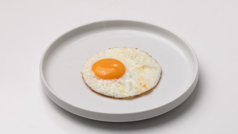 Fry the egg for 3 minutes, until the egg white is cooked but the yolk is still runny.