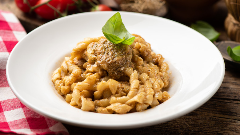 An unconventional pasta shape that more people should use in their cooking, trofie is made with durum wheat flour, salt, and water. There's another variant of this pasta called trofie bastarde, which uses chestnut flour to give it a sweeter taste. Although its strands are short and thin, trofie has a dense and delightfully chewy texture, making it the perfect starchy companion to green pesto's potent flavor.