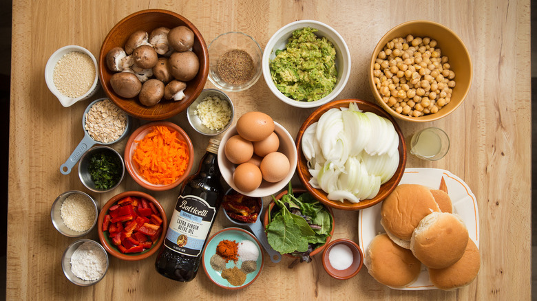 Gather your veggie brunch burger ingredients