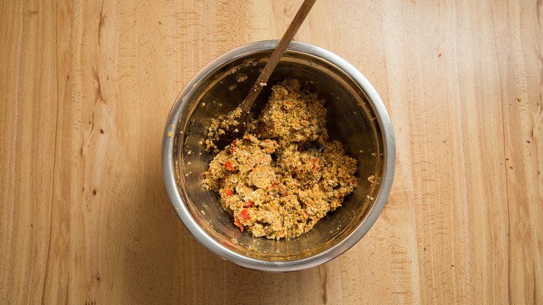 - Transfer the contents of the food processor to a large bowl, add the breadcrumbs and flaxseed mixture, and stir well to combine. Cover the bowl and refrigerate for at least 30 minutes.