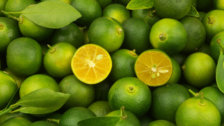 Next time you're making a cocktail and are ready to stray from lemons and limes but still want a tangy, refreshing punch, give your booze an upgrade with citrus from the Philippines and Southeast Asia. None other than calamansi or Philippine lime, you'll often find its zingy flavors brightening popular Filipino dishes you have to try, like sisig and adobo. Round and small with a verdant peel, at first glance, an unripe calamansi resembles a plump lime. Cut it open and the fruit reveals juicy, bright orange flesh within. Over time, the pretty green peel fades into orange, becoming fully orange once ripened, looking more like a mandarin.