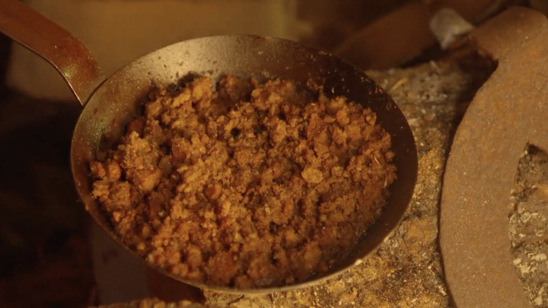 Soldiers were not a fan of hardtack because, well, it was plain and very, very hard — it even gained names like "tooth duller." So, something like Skillygalee was a perfect way to utilize the hard cracker in an inventive way. The first step in making the dish is to break up the hardtack, which is often done with the butt of a rifle, and soak it in water for at least 10 minutes.