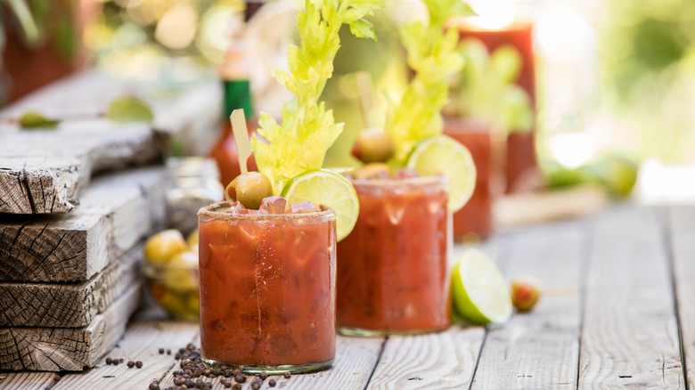 The bloody mary is a brunch cocktail icon. In fact, when Tasting Table surveyed readers on their all-time favorite brunch drink, this savory treat came in just behind the ubiquitous mimosa. Thought to have originated in Paris before reaching New York City, this tipple has probably been enjoyed during sun-up hours since the 1920s. The quintessential bloody mary recipe calls for vodka, tomato juice, lemon juice, Worcestershire sauce, Tabasco sauce, salt, pepper, and celery salt. However, few cocktails inspire as many twists as the bloody mary. The fact that it has this savory, salty, spicy, umami, bright, and tomato-forward profile really opens up the possibilities for fun tweaks. That's why we see so many delectable garnish options for the bloody mary, from classic celery to tropical pineapple — some restaurants even offer wild renditions with crab claws and sliders.