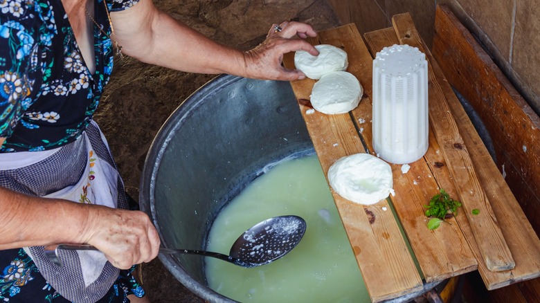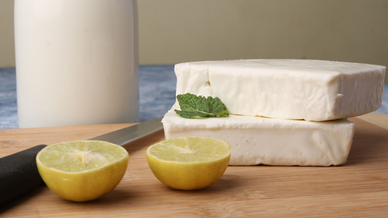 Paneer is one of the easiest cheeses to make at home — it just requires milk and a form of acid, like lemon or vinegar, some heat, and a pot. In fact, the lack of animal rennet to set the curds makes paneer one of the most reliable vegetarian cheese choices. The firm, mild cheese has been a staple in Indian kitchens since the 16th century, when it was introduced through the influence of Persian rulers. Water buffalo milk was the dairy source of choice for paneer because the high fat content makes a rich flavor and creamy texture, but today, full-fat cow's milk is typically used. After heating the milk, a small amount of acid, such as lime juice, buttermilk, or vinegar, is added which clumps the milk proteins together, forming whey and curds. The curds can be eaten as is, like a tofu scramble, or pressed to make a firm slicing cheese.