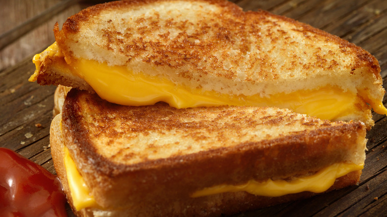 Think of all of the best parts about a grilled cheese. It's salty, savory, and cheesy. The same can be said about pesto. Not only will you get the subtle garlicky kick that your tastebuds are craving, but the pesto will pair well with an array of cheeses besides just plain old American. Mozzarella seems like a natural pairing for pesto — plus it will give you an Instagram-worthy cheese pull. Add a slather of this condiment to your next grilled cheese and see what all the hype is about.