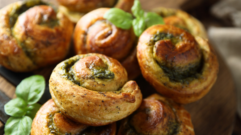 You can also make a simpler batch of pesto pinwheels. Just unroll a sheet of puff pastry dough, slather on the pesto, and roll it up into a tight log before slicing out your individual pieces. This sauce could also be an excellent topping for a warm batch of garlic knots.