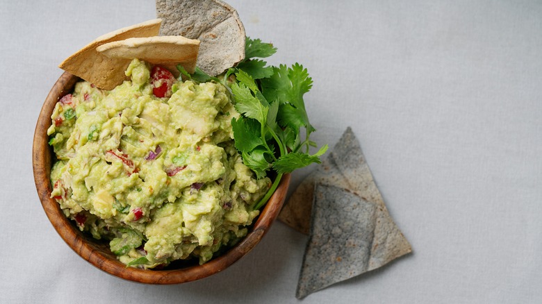 There's nothing wrong with a bowl of guacamole brimming with jalapeños, cilantro, and chunks of red onion. But, you can always give your guacamole an edge with a new ingredient — like pesto. Adding pesto to the party may seem like not only a cultural clash, but also a head-butt of flavors. However, if you give it a shot, you'll find that the herby flavors of the pesto mellow out the fattiness of the avocado and the residual heat from the jalapeño.
