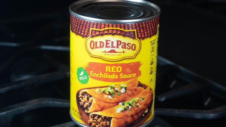 With society's ever-growing desire to have dinner ready in a jiffy, it's no surprise canned and otherwise easy-to-use items (labeled "pre-made" or "instant") have been climbing the ranks of pantries across the country. Canned enchilada sauce is no exception. From quick enchiladas to 30-minute Tex-Mex-inspired casseroles, the canned sauce has been storming the online recipe game. Most recipes are centered around Hispanic dishes, but there's so much more you can do with the sauce — including using it for pizza.
