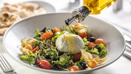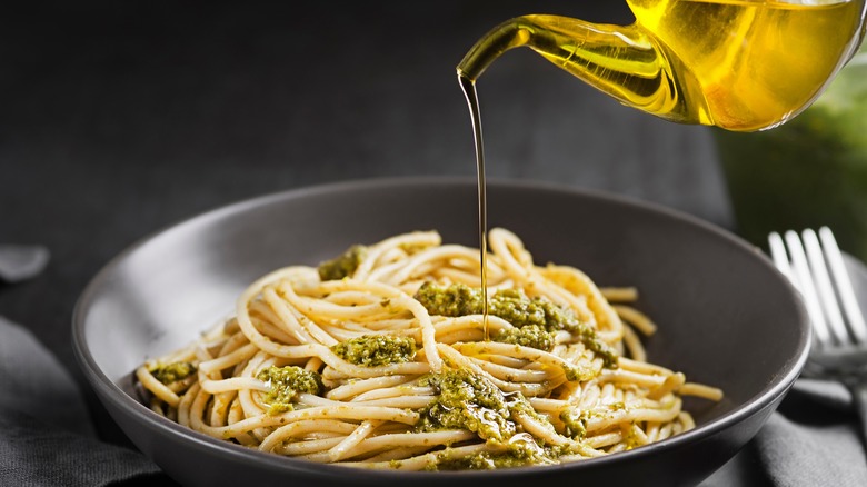 When a recipe calls for a squeeze of lemon or a sprinkle of salt, there's a reason the recipe writer hasn't given you a better estimate. You're intended to use some judgment — would you enjoy more olive oil on the plate to wipe up with a slice of bread? Then drizzle heavily. The finished flavor is also an important consideration. Lightly flavored lettuces or an unexpected sweet fruit pairing with olive oil could be overwhelmed by strong, grassy extra-virgin varieties, so a light drizzle simply adds welcome pepperiness. On the contrary, too little oil drizzled on a roasted chicken or relatively plain pasta can leave your plate dry and dull. So don't obsess on the measurement — lean into your personal taste and creativity, and enjoy the drizzling process.