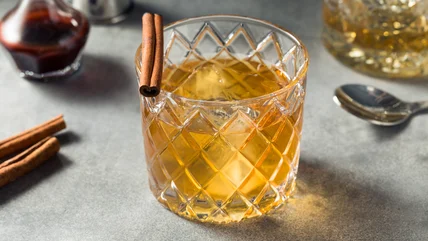 Once it's thoroughly infused, just strain through a mesh strainer or coffee filter and enjoy your customized spirit. You could sip this flavorful cinnamon-infused bourbon neat or on the rocks for a warming digestif with a lingering burn. Or, use your homemade cinnamon bourbon as the spirit in a bold cocktail recipe like an autumnal hot toddy, spiced Boulevardier, cobbler-esque Peach Bourbon Smash, or a smoky French 95.