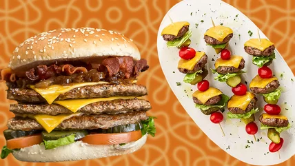 Burgers are typically a main dish loaded with cheese and toppings on a bun, whereas their smaller counterparts known as sliders function as both starters and entrees (if you eat a couple). To switch things up for your next cookout or casual dinner party, take inspiration from both of these classic dishes to make burger kebabs. Kebabs, which you might typically make with grilled meats and vegetables, make great handheld appetizers that are easily customizable for your family and other guests.