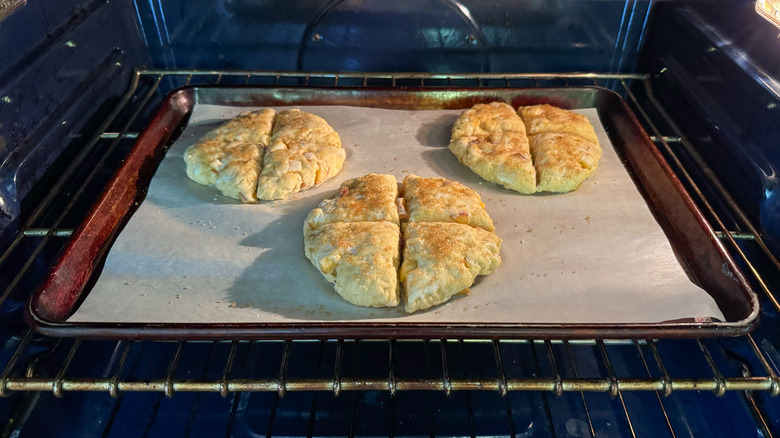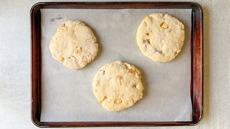 - Pat each piece into a round disk and transfer to the baking sheet.