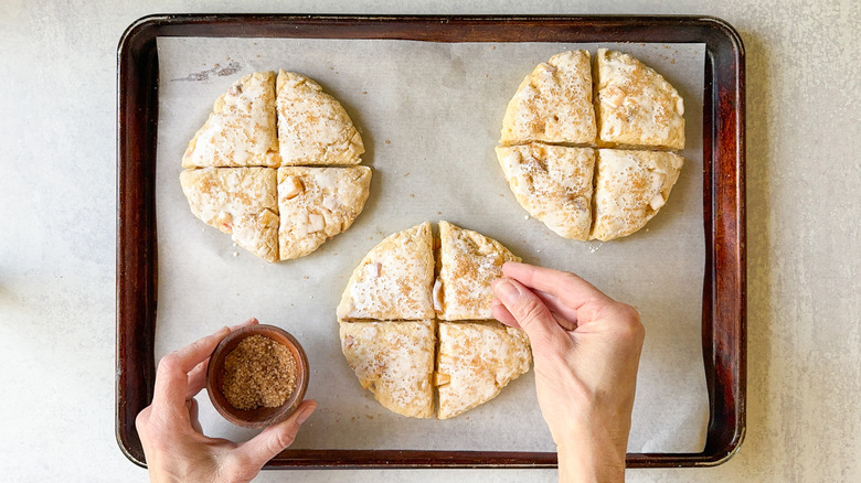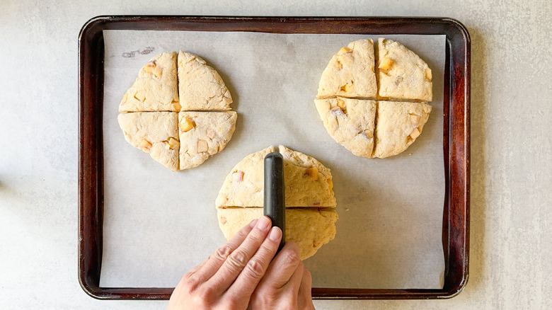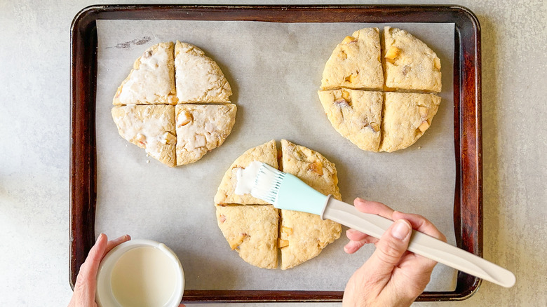 Brush the tops of the scones with the remaining 1 tablespoon heavy cream with a pastry brush.