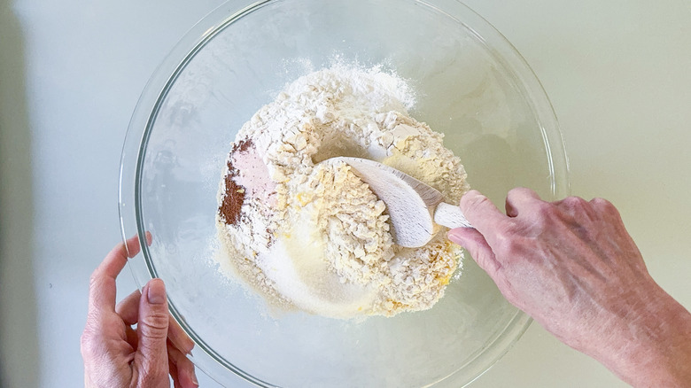 - Combine the flour, granulated sugar, baking powder, salt, cloves, and lemon zest in a large bowl.