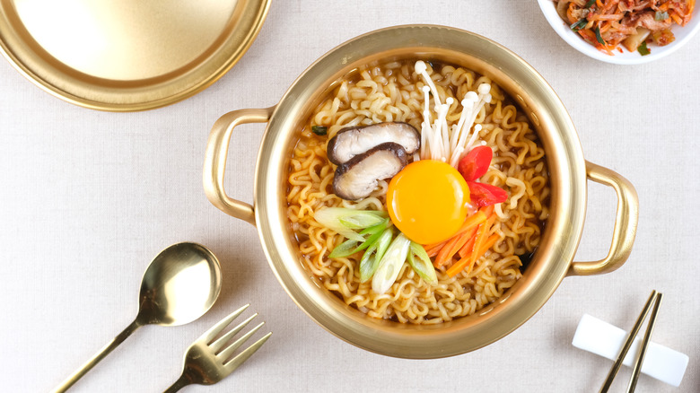Rachael Ray had some great suggestions for elevating your instant ramen, but the upgrades don't stop there. You can customize it to exactly your liking with all of your favorite ingredients. For example, Tasting Table's recipe for spruced up instant ramen and fixings includes many of Ray's suggestions, such as the veggies and egg, while infusing soy sauce (with an addition of miso) into the veggies for extra flavors. Our veggies of choice include bok choy and mushrooms, but choose any of your favorites: Corn, bean sprouts, and spinach are all great options.