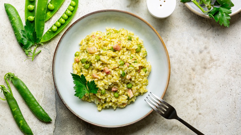 In Venetian dialect, risi e bisi literally means "rice and peas" — and that's exactly what it is. This creamy rice dish is flavored with fresh peas and pancetta, the latter of which you can leave out if you want to make a vegetarian version. What makes this dish stand out among other Italian rice-based meals is that it is neither risotto nor minestrone — it's something in between that isn't too dry or too wet.