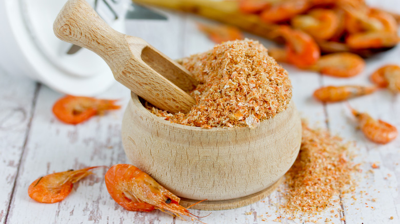 Making shrimp seasoning, or more aptly, shrimp powder is a creative way to combat needless food waste. It's also cost-effective and nearly effortless to make. However, the biggest benefit of making shrimp seasoning lies within its bold profile. Shrimp powder is richly savory with a briny saltiness and subtle nuttiness. Along with emphasizing fishiness in shrimp-centric dishes, the rust-colored powder can also underline umami in other dishes. Plus, it even provides layers of flavor, increasing overall complexity.
