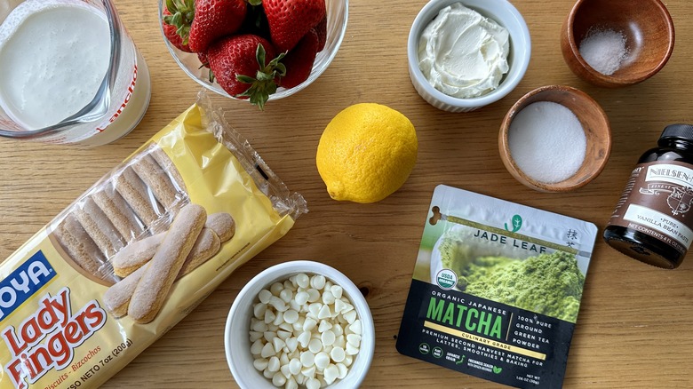 Gather the ingredients for matcha strawberry tiramisu