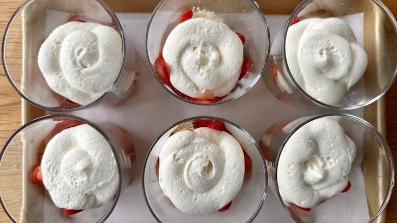 - Pipe mounds of cream in a ring shape in each glass.
