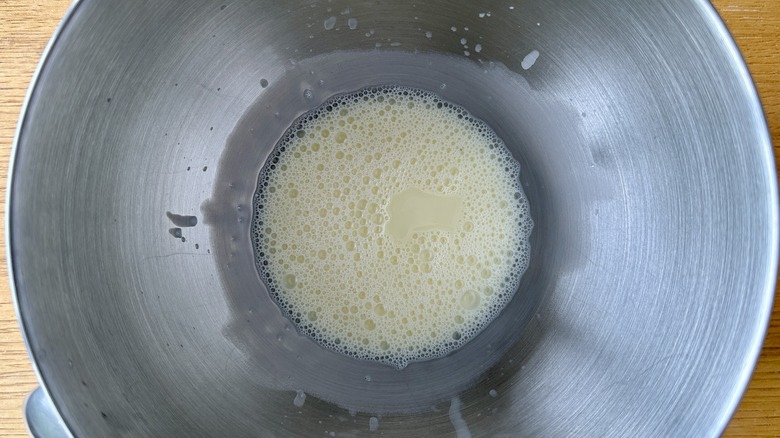 - Transfer the white chocolate mixture to the bowl of a stand mixer and refrigerate for at least 15 minutes or until cool to the touch.