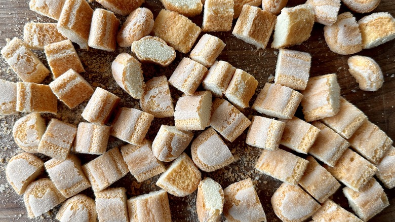 - Cut the ladyfingers into small pieces (about ¾-inch). Set aside.