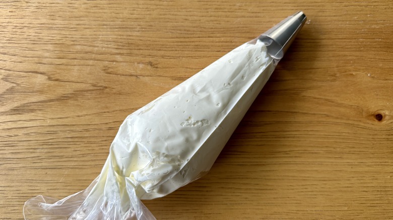 - Transfer to a piping bag fitted with a medium round tip.