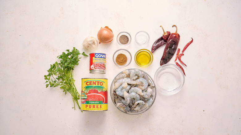 Gather the ingredients for camarones a la diabla