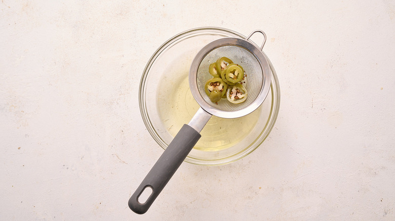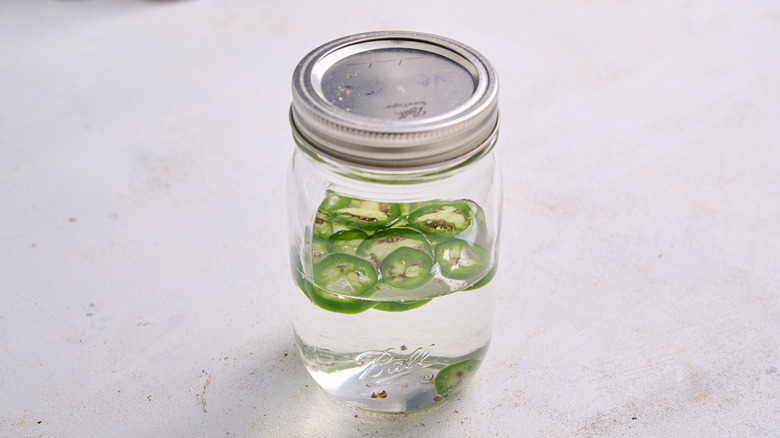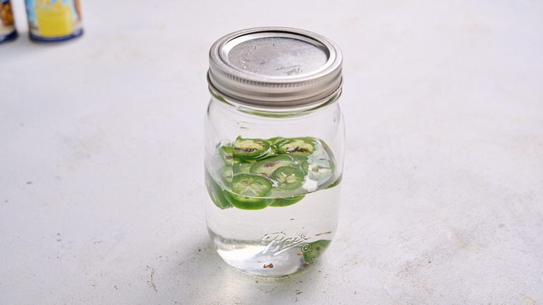 - Add the jalapeño to the vodka and steep for 6 to 8 hours to infuse.