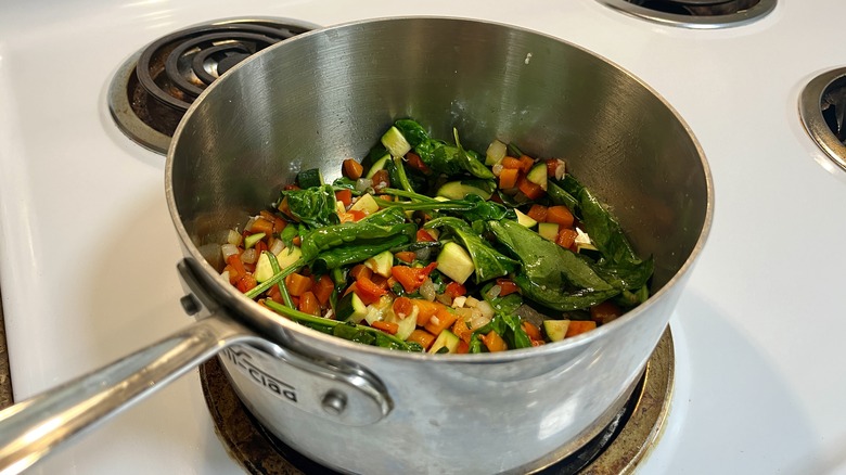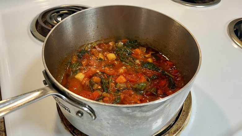 Reduce the heat to a simmer, cover, and cook for 10 minutes until the vegetables have softened.