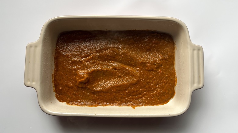 Step 8: Spread sauce in the baking dish