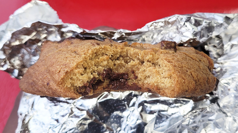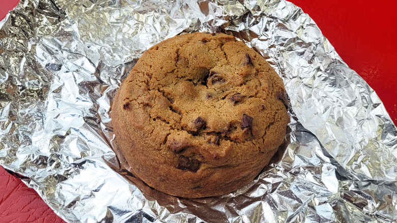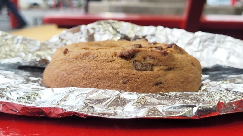 That said, Costco does a lot right with this chocolate chunk cookie. For example, it would not be nearly as delicious if the retailer sold it at room temperature. If you don't plan on eating it right away, I highly suggest microwaving it first. In addition to that, the price point is a great deal considering the size of the cookie and its competition. At $2.50, Costco continues to offer a great value at its food court. Although it's not going to be the sole reason you buy a membership, when it comes to chain cookies, Costco's double chocolate chunk cookie is easily top five — especially if you enjoy extra-large chocolate chip cookies.