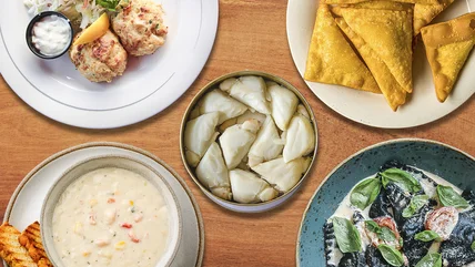 If you can make your own pasta, you absolutely should. Nothing can compare to the satisfaction of rolling out your homemade dough to create little morsels of deliciousness. If this is too much trouble, buy some high-quality pasta sheets instead. For the filling, mix your lump crab with ricotta cheese, lemon juice and zest, and some fresh herbs to keep the flavors light. Then spoon a dollop of filling onto the sheets of pasta every few inches, before topping with another sheet and cutting across to make perfect little squares. Serve with a simple butter sauce, which will let the crab stand out.