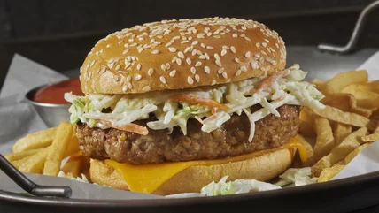 Both beef and pork are considered lean meats, and ounce for ounce they have about the same amount of protein, with the amount in beef being only slightly higher. Beef also has more saturated fat than pork, but the ratios of saturated and unsaturated fats are distributed more evenly in beef. This is why when pork cooks, it emits more juice and fat than beef. So, while it may seem counterintuitive, cooking a pork burger requires binder to hold all the juices — as well as the flavors — inside the patty.