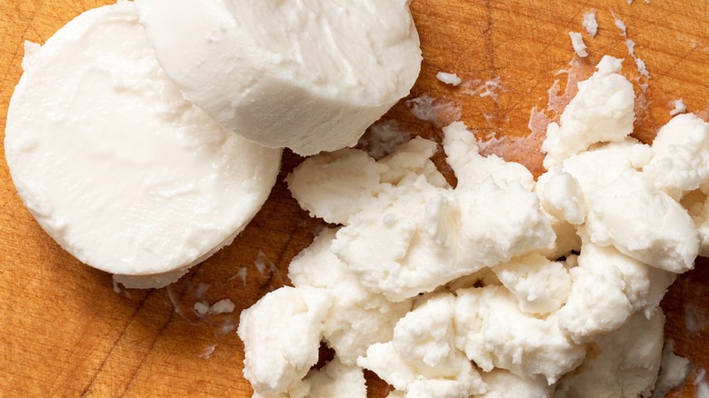 Nelson Serrano-Bahri is also a fan of folding soft cheese, such as goat cheese, into scrambled eggs, but he recommends only adding them after you've taken the skillet off the heat. Very soft, high moisture cheeses can melt too quickly, turning into a disappointing puddle around your eggs. In particular, Serrano-Bahri enjoys folding full-fat cottage cheese into eggs. He says that the curds make "a delightful contrast to the soft eggs by adding a subtle tanginess."