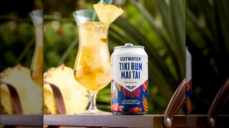 Tasting Table ranked eight popular Cutwater canned cocktail flavors, and Bali Hai Tiki Rum Mai Tai came out on top. Allow us to explain our choice. Befitting true Mai Tai form, Cutwater's canned ready-to-drink cocktail cracks open with a rip curl of tropical flavor — sweet with a distinct tanginess and spiced notes from the rum that keep the profile from being one-dimensional. The cocktail combines white rum, barrel-aged rum, coconut, pineapple, and nondescript "citrus," per Cutwater's website. At first sip, the palate is pineapple, orange, almond, and cream soda-dominant with a fruity, spiced nose. It's more juice-forward than offering a pronounced boozy taste, which is low-key shocking considering how spirit-forward the proportions of this unassuming sipper are. Each 12-ounce can packs two shots of rum, making this bad boy the equivalent of two standard drinks.