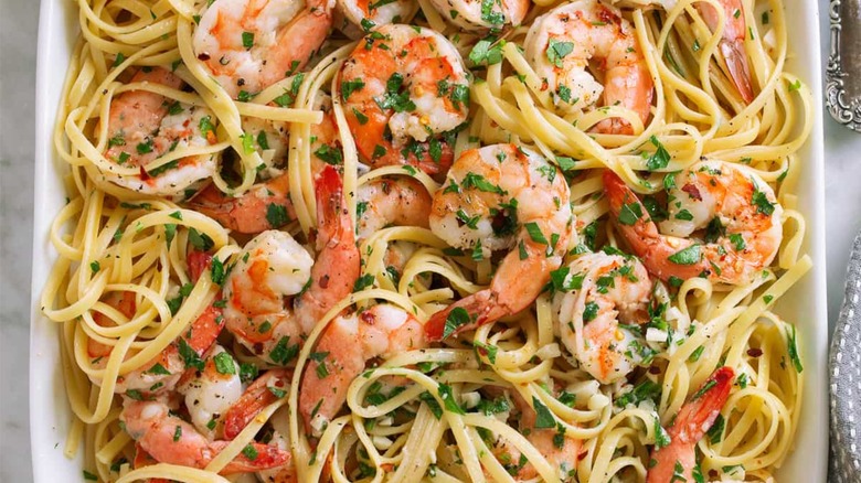 Shrimp scampi is a decadent, buttery meal that pairs nicely with roasted broccoli, carrots, or a green salad. Now, if you're like us, shrimp scampi might be the type of dish you've ordered at a restaurant but never attempted at home. But while it might taste like a lavish, complicated dish, it's not too difficult to make. More than that, when you want to bring a touch of heat that won't conquer the overall flavor profile, the last scrapes of Dijon mustard can give shrimp scampi a hint of spice.