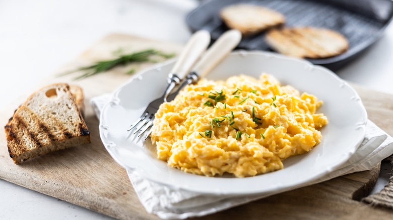 When you're looking for ways to impart a touch of heat to your breakfast without hot sauce, Dijon mustard can give a tangy punch to scrambled eggs. You don't need much of the condiment to spruce up your huevos, either, making it the perfect way to use that last bit of mustard in the jar. Plus, many Dijon mustard varieties (like Grey Poupon) are made with white wine, which delivers a different acidic component than mustards made with vinegar.