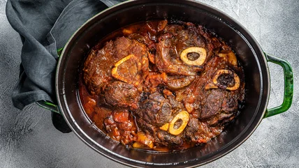 Northern Italy's Lombardy region — particularly the city of Milan — is known for some of the nation's most iconic foods, including polenta, risotto, gorgonzola, and the famous veal Milanese. Another equally famous Milanese dish is osso buco, featuring veal shanks braised in a spiced white-wine broth until melt-in-your-mouth tender and bursting with flavor. Braising is a slow and wet method that cooks tough, sinewy cuts of meat until they fall off the bone, so you might be surprised to hear that the best way to prepare meat for braising requires a dry cooking method.