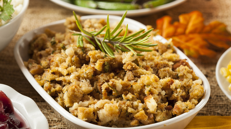 Though stuffing was intended to complement and flavor the meat or poultry encasing it, it has become somewhat of a classic in its own right. After all, what's Thanksgiving without the stuffing? What is particularly useful about the dish is its versatility; it can be prepared using a wide range of fresh ingredients, pantry essentials, and leftovers. Indeed, stale bread is commonly used to give stuffing structure and crispiness, but leftover almond meal proves itself to be another excellent choice.