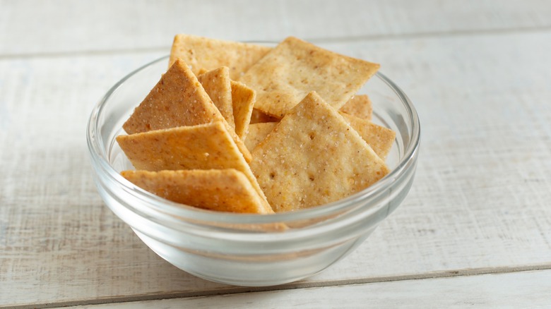 Although it's more common to see almond flour, almond meal's blanched and more finely ground counterpart, in baking, there's no reason why you can't use leftover almond meal for the same purposes. Though there will be minor differences, such as a denser texture and less uniform finish, almond meal can be substituted in for almond flour in a gluten-free cracker recipe. In fact, if you prefer thicker and coarser crackers, almond meal may show itself to be not only a suitable stand-in, but perhaps an even better alternative because it can provide that extra roughage and texture for a more satisfying bite.
