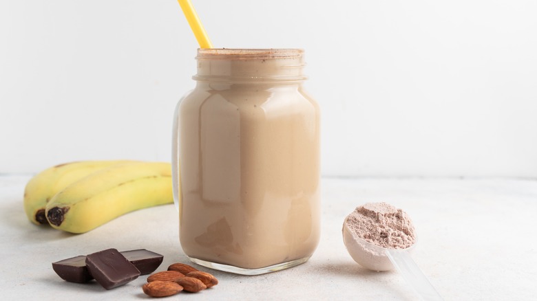 There's no doubt that almonds are an excellent, protein packed addition to smoothies. Not only do almonds help add a tasty nuttiness and subtle sweetness, but it will also imbue your smoothies with protein, fiber, and healthy fats to keep you feeling full long after you drink it. While you can add whole almonds to your smoothie (just be careful not to break your blender), or use almond milk as the liquid base for your drink, almond meal is arguably the better choice. It blends seamlessly with other ingredients, while also adding extra fiber — thanks to the intact skins and pulp.