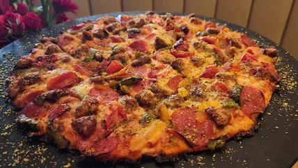 I liked the Spicy Chicken Sausage a bit more than The Ultimate. Unique to the new tavern-style pizza lineup, this one has the spicy marinara sauce, which I thought played very well with the chicken sausage, fire roasted peppers, caramelized onions, and Parmesan-oregano seasoning. I felt that this pie really leaned into being spicy — not overly so, but enough to have a clear flavor identity. According to Antalek, Gen Z consumes more hot sauce than ketchup, so creating a spicy pizza was a must. (In fact, Pizza Hut recently developed a hot honey pizza catering to fans of popular "swicy" foods featuring sweet-and-spicy flavors.)
