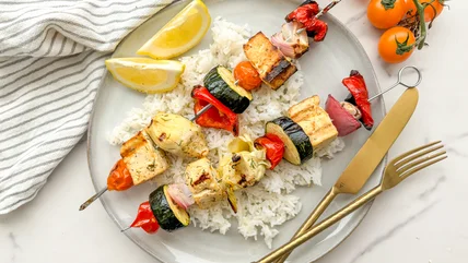 "I grew up with Mediterranean cooking and use a lot of the meals I had as a child as a foundation for my cooking today," wellness coach and recipe developer Miriam Hahn tells us." Almost all of my recipes contain fresh herbs which elevate any dish, so I use them freely." Once your skewers are done cooking, it's up to you how to serve — keep them on the sticks and plate them atop a bed of rice, or remove the goodies from the sticks and dive right in.