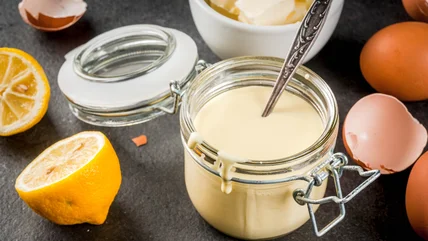 In addition to using room-temperature egg yolks for your hollandaise sauce, there are a few cooking tips that will elevate it to French-chef status. In this recipe for lemony hollandaise sauce, it's recommended to beat the egg yolks, lemon juice, and water with a metal whisk until the mixture doubles in volume. This will incorporate air into the sauce and achieve the frothy, velvety texture that a good hollandaise is known for. Another method for achieving this texture is to pulse the sauce in a blender.
