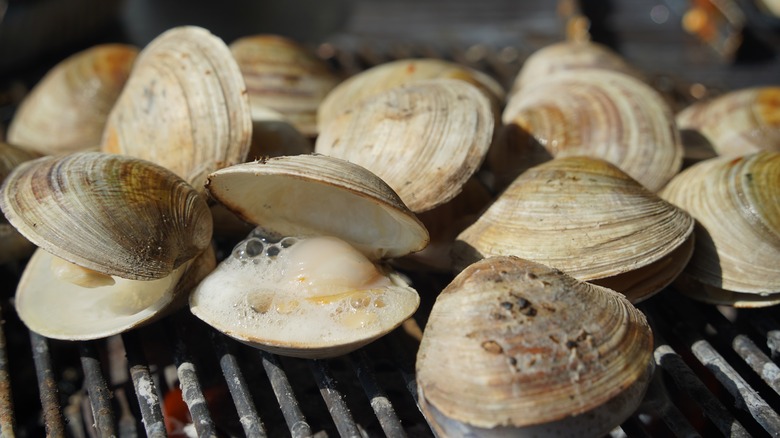 Fresh-cooked shellfish is the perfect meal for a hot summer's day. Whether it's clams with linguine or steamed littlenecks with white wine, clams are always a showstopping dish. One of the simplest methods of cooking clams is also one of the most flavorful — putting the mollusks straight on the sizzling grill, with nothing else added, and wait until they open naturally after a few minutes. The shells will be hot to the touch, as they directly contact the grill, so make sure to use tongs when removing them. Once cooked, grilled clams and garlic butter make a wonderful pairing.
