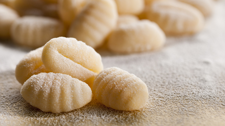 Gnocchi are dumplings made from flour, eggs, and potatoes, with many flavor variations available that range from pumpkin to spinach to ricotta. Typically boiled and served with pesto or tomato sauce, gnocchi aren't usually grilled, but preparing them this way draws out a whole new texture. When grilled, the gnocchi become crispy on the outside and very soft and tender on the inside. An effective grilling method for these dumplings is to skewer refrigerated gnocchi, brush with oil, and place them on the grill. Once cooked, they can be tossed with veggies or herbs, and topped with freshly grated cheese.