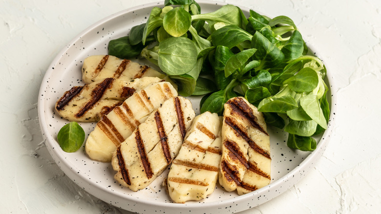 If you haven't tried halloumi cheese before, you're missing out. Its springy texture and salty, chewy bite make it a tasty side dish or topping. Halloumi cheese works well on the grill because its exterior remains intact, so there won't be any messy drips on the grill grates. When exposed to heat, halloumi develops a light-brown crispy crust and a soft interior. Seared halloumi lends salty richness to a salad, or try a recipe for grilled halloumi skewers with tomatoes. Halloumi has a subtle flavor, making it a great alternative to stronger cheeses like feta — and grilled halloumi makes a great meat alternative for a burger.