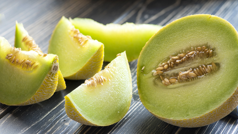In the U.S., honeydew melons are at their peak season from the summer months into fall, presenting perfect timing to grab a ripe melon and get creative with cooking fruit outdoors. Grilling honeydew is a great way to introduce a charred flavor to complement the melon's natural sweetness. All the honeydew needs is a quick sear on medium-high heat to get those classic grill marks. It's good to give your grill grates a quick cleaning before cooking, so the melon doesn't pick up any leftover flavors. A great way to eat grilled honeydew is on kebabs with a splash of citrus, or even in a grilled honeydew salsa recipe for a refreshing taco topping.