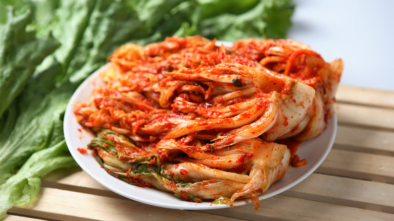 A classic Korean side dish, kimchi is made with salted and fermented produce, typically including cabbage, carrots, garlic, and ginger. South Korea's national dish, kimchi has been made and consumed for thousands of years. The specialty is spicy, tangy, and a little bit sour. It is a great accompaniment to meat dishes like grilled bulgogi BBQ beef, chicken, or steak. Grilling the kimchi until it's slightly charred gives it smokiness. Kimchi is served chilled, so after grilling, be sure to let it cool and refrigerate it until serving. Grilled kimchi would pair well with other veggie-based sides, like cucumber salad or pickled radish.