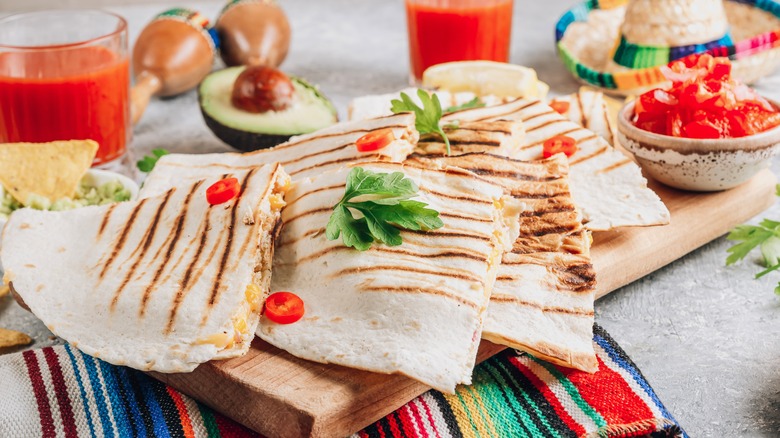 One of the most versatile and cheesy dishes out there, quesadillas can be either an appetizer or the main attraction. They can be made in minutes and be filled with endless combinations of proteins, cheeses, and veggies. From shredded chicken quesadillas to sheet-pan quesadillas filled with refried beans, quesadillas are a cheap, filling meal option that appeases people of all ages. The best way to make multiple quesadillas is to prep a few at once and throw them all on the grill for a few minutes, until the tortillas have brown spots and are crispy. Serve with sour cream or salsa.